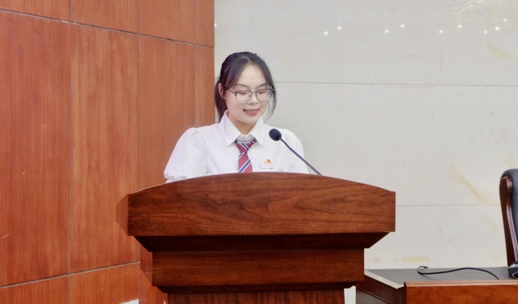接着,52av 学员代表田一诺同学发言。生逢其时,责任在肩,理想远大,信念坚定。田一诺同学表示全体学员将端正入党动机,珍惜学习机会,认真学习党的理论知识,提高自身素质;牢记党的宗旨,全心全意为人民服务,积极参加党组织的各项活动,为祖国的发展尽我们的责任和义务。
