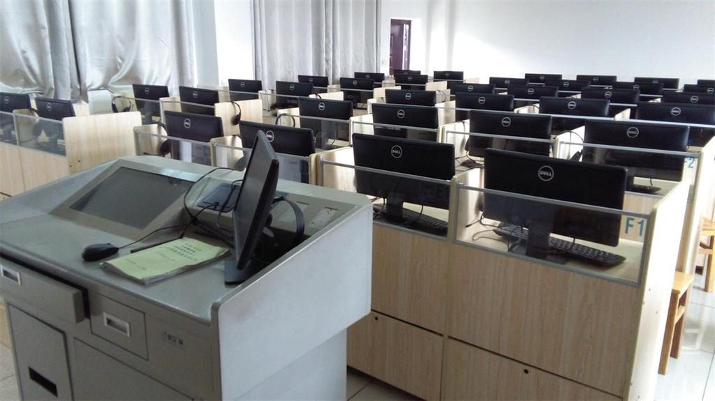 外语写作与阅读实训室现有固定资产52万余元,构建了一个互动式视听说教学平台和互动式写作与阅读教学平台,主要为学生的英语视听说、英语阅读与写作等课程课堂教学和实践提供实训场地。该实训室配备了学生学习计算机终端和教室局域网,具有互动式的影视视频听力讲解、复听训练系统,以及计算机自动评估的听写教学系统、听力选择系统等。具有互动反馈式的跟读系统、朗读系统、小组讨论系统等。配备协作式的阅读教学、精读训练等教学系统。教师可以组织口语教学资源,采用流程化操作开展跟读、朗读、小组讨论训练,系统自动完成学生学习结果的实时反馈,教师也可组织互评,进行示范或讲评。具备协作式的讨论写作、配音练习、协作翻译等教学系统。主体设备:互动式视听说教学平台、互动式写作与阅读教学平台及相关应用软件,教师计算机学生计算机及显示器,学生机耳麦,网络交换机组,交换机机柜,主控台,教师椅,学生双联桌,学生凳,连接套件,防静电地板等。