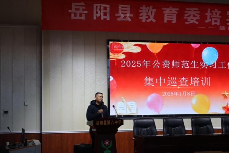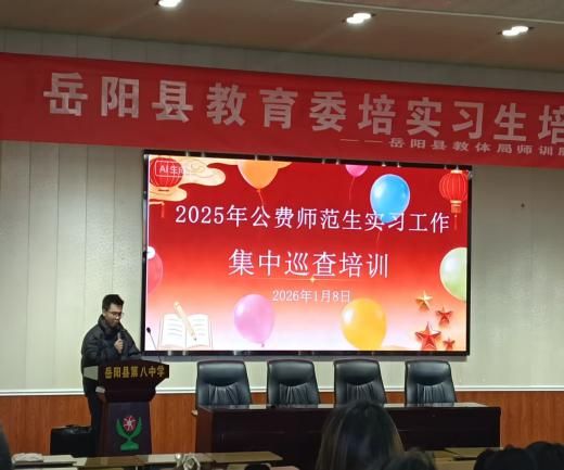 为深化校地协同育人机制,切实提升公费师范生教育实践能力,近日,我校联合岳阳县教育体育局,共同开展2025年公费师范生实习集中巡查培训活动。活动以“巡查+培训”双线并行模式,全面检验实习成效,助力师范生专业成长,进一步推动教育理论与教学实践深度融合。