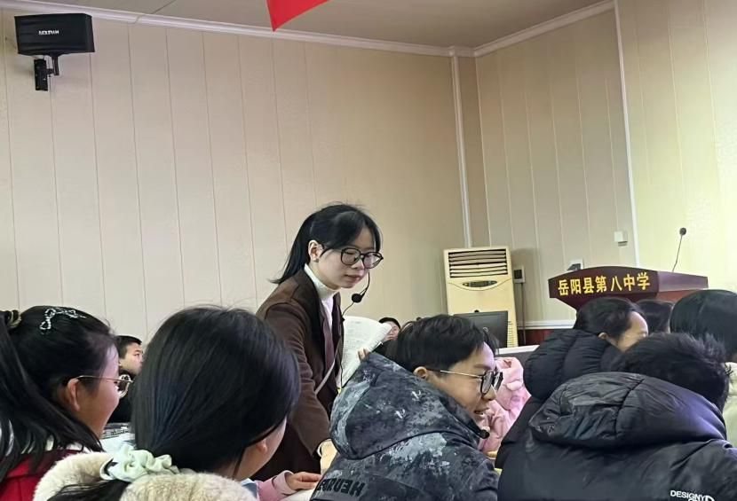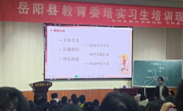 活动首日,一场精彩的教学展示课拉开序幕。岳阳县八中实习生代表周丽莎,以部编版语文课文《女娲造人》为授课内容,为在场师生呈现了一堂生动有趣的示范课。