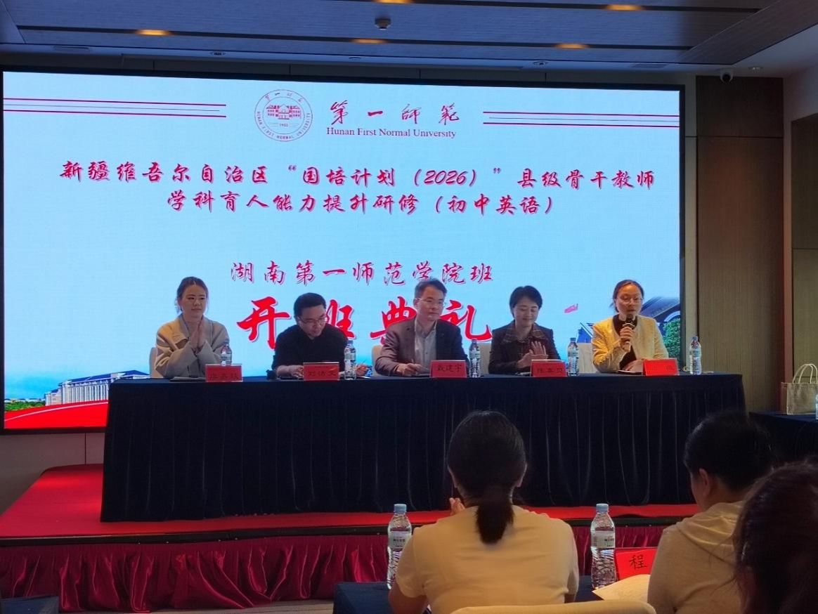 4月16日上午,新疆维吾尔自治区“国培计划(2026)”县级骨干教师学科育人能力提升研修(初中英语)开班典礼在长沙举行。本次项目由52av 承办,助力新疆县级英语教师提升教学创新与育人能力。