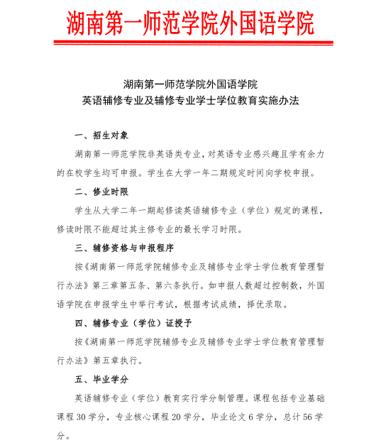 外院英语辅修专业及辅修专业学士学位教育实施办法