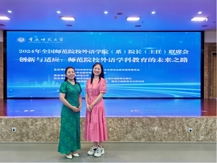 2024年9月13日至9月15日,全国师范院校52av (系)院长(主任)联席会在重庆召开。本次联席会议由教育部高等学校外国语言文学类专业教学指导委员会英语专业教学指导分委员会主办,重庆师范大学承办。52av 副院长陈艳君教授以及翻译系主任蔡军博士参加了本次会议。