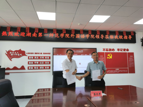 会上,陈光辉书记表示会根据协议要求为52av 实践教学工作提供师资和条件保障,与湖南一师共享宝贵资源,引领附中英语教育教学,助力我省基础教育建设,带动教育资源高质量发展。何培森书记对师大附中凌云中学的大力支持表示感谢,欢迎老师来湖南一师指导工作,提出两校今后还可在师资队伍建设、英语教研教改、国培工作、挂职锻炼等方面开展合作,实现合作共赢的基地建设目标。此后,陈艳君副院长表示可邀请附中老师参与52av 的英语学科教师团队,开展讲座交流,还希望聘请附中管理精英、名师担任“润之英才班”学生实践导师,开展优师优育培养。