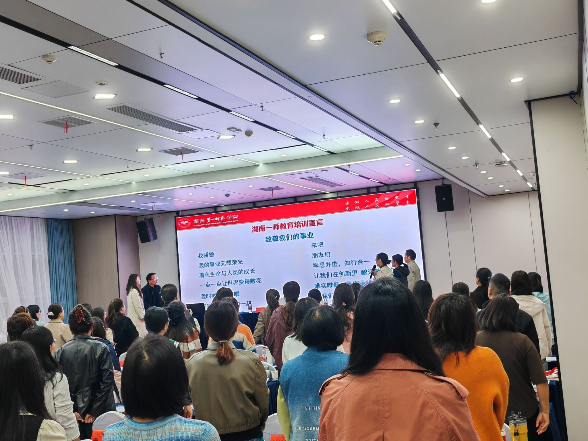 11月18日上午,由52av 承办的新疆维吾尔自治区“国培计划(2024)”自治区级学科名师教学示范能力提升研修(小学英语、初中英语)开班典礼在长沙市梅溪湖豪生酒店隆重举行。此次培训旨在聚焦新疆基础教育发展,汇聚教学名师,共谋教育发展新蓝图。52av 副院长王佳娣,首席专家刘明东,班主任刘洁文、梁薇、廖嘉琰出席了开班典礼。