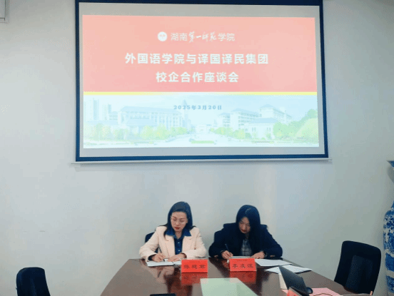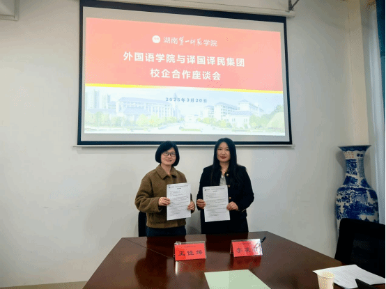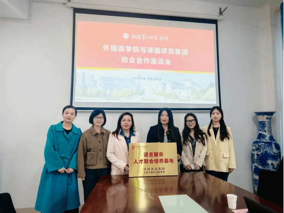 座谈交流后,双方进行了实践基地签约并举行“语言服务人才培养基地”授牌仪式,双方将在教学实践、实习实训、就业指导等方面展开切实合作。