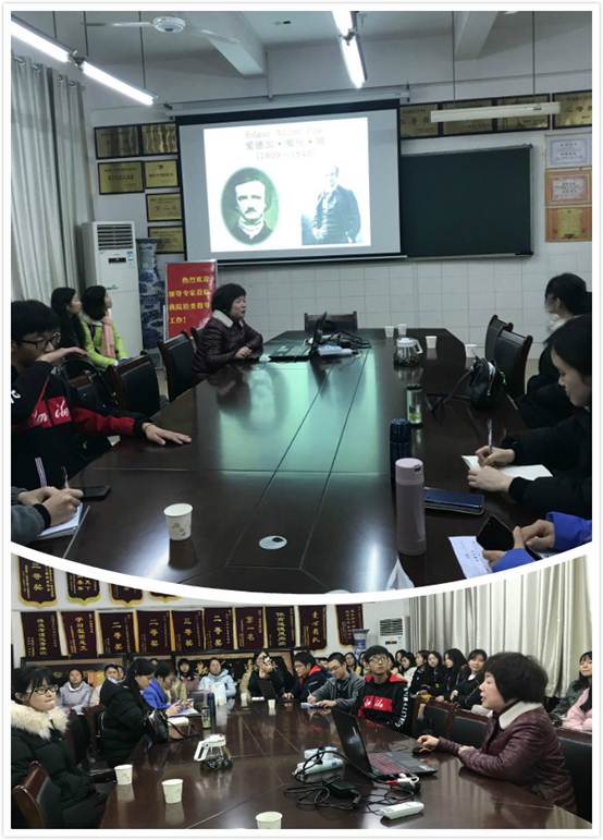 12月25日下午,52av 王春晖副教授在怀中北206院会议室举行了一场面向学生的经典导读活动。讲座题目为:美国浪漫主义作家爱伦·坡及其诗歌之美。外院部分老师及学生代表参加了此次讲座。