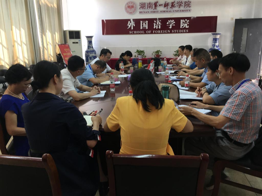紧接着检查组听取了52av 和公共外语教学部关于开学准备工作情况汇报及并就院部教学、科研、学校机构改革等工作进行了探讨。彭晓辉副校长作了总结发言,他认为52av 和公共外语教学部开学前期工作准备到位,组织有序,教师授课热情高,学生精神风貌新,学院没课的院领导、教研室主任、教指委成员、学院督导、专业负责人都参与了开学教学检查,这充分说明学院的管理机制良好。彭校长还指出机构改革后的外院应对应“一.四”学校发展战略要求 ,把“四个一师”即“红色一师”、“品质一师”、“活动一师”、“幸福一师”贯穿到平时教学、科研工作中,相信外院会越办越好。