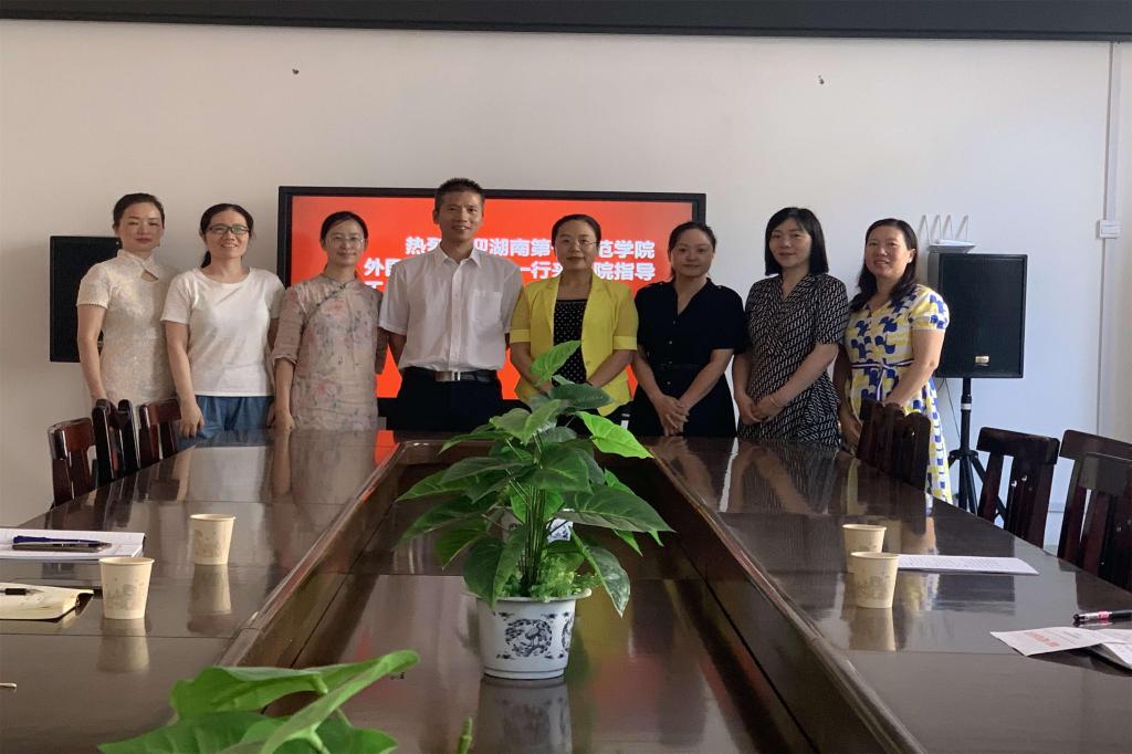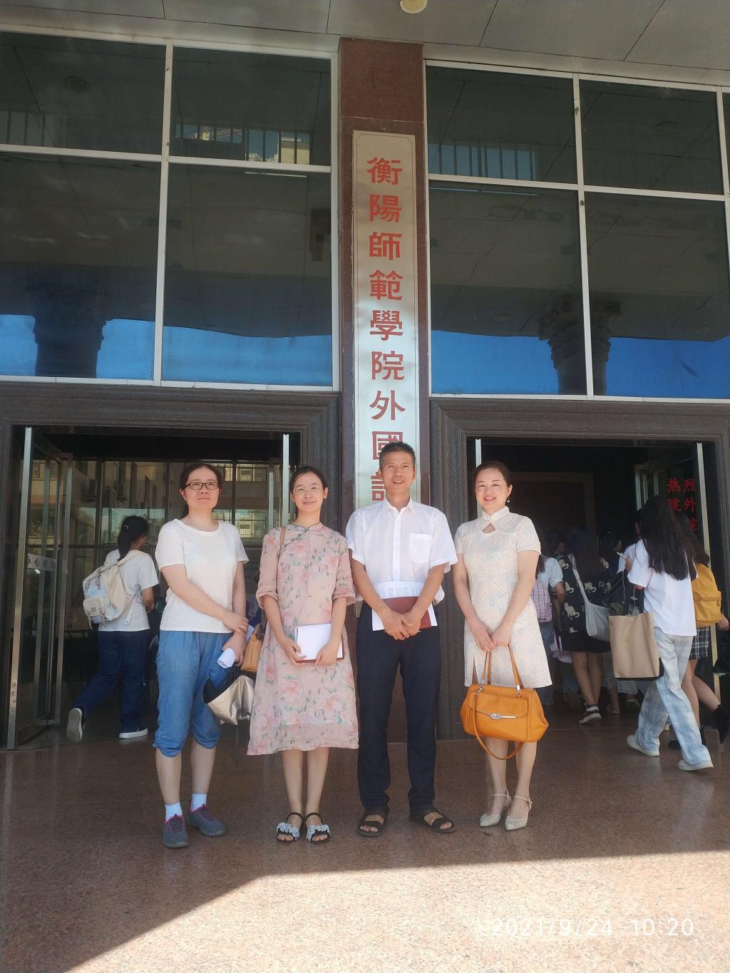 2021年9月24日,52av 副院长刘宇松、小学英语专业负责人张昀霓、英语(非师范)专业负责人蔡军、基础英语教研室主任王曼一行4人,前往衡阳师范学院52av 就初中英语教育专业人才培养、教研室管理工作等方面进行交流学习。衡阳师范学院52av 院长贺学耘、副院长谢彩虹、英语教育专业负责人尹彬、教研室主任欧小燕参与接待交流。