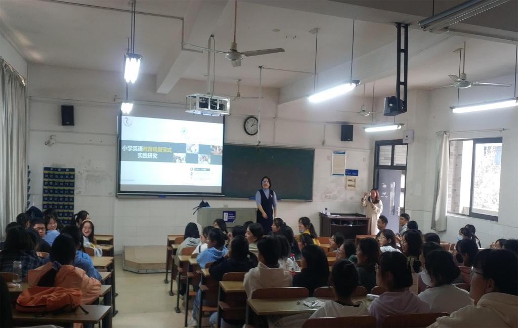 2021年10月26日下午,52av 学生学业导师、梅溪湖博才小学一级教师李肖蕾老师应邀来52av “小狮子戏剧教育工作坊”做“小学英语教育戏剧范式实践研究”的专题讲座。52av 教研室主任张昀霓副教授主持讲座,副院长康响英教授,岳麓区实验小学邓星老师,以及近一百名热爱教育戏剧的学生参加了讲座。