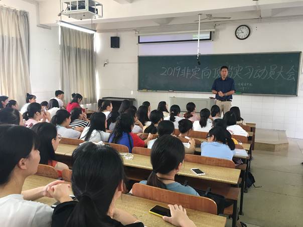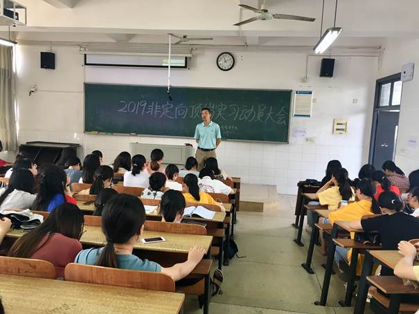 为进一步做好2020届非定向毕业生顶岗实习工作,引导学生做好顶岗实习前的各项准备工作,推进实习工作的顺利开展,52av 于2019年9月5在怀中楼南303教室召开“2020届非定向顶岗实习动员大会”。参加此次实习动员大会的有刘宇松副院长、杨虎智副书记、教务办唐翠兰老师、廖爱秀老师、辅导员谭梦老师以及2017级顶岗实习全体同学,共计142人。会议伊始,杨虎智副书记给学生强调了要摆正心态,积极投入到实习工作中去;还要注意安全意识,确保人身安全。接着,唐翠兰老师、廖爱秀老师和谭梦老师分别就学生实习期间补考工作安排、实习资料填写以及实习要注意的事情进行了详细说明。最后,刘宇松副院长指出教育实习活动是师范生人才培养过程中一个重要的实践性教学环节,学生应积极参与教育实习,在实习中学习,查缺补漏,为之后的工作打下坚实的基础,告诫同学们要牢记校风“实事求是,不自以为是”和校训“要做人民的先生,要先做人民的学生”,并祝愿同学们实习取得圆满成功!