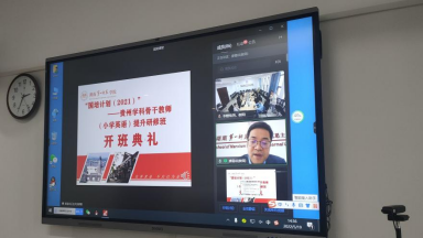 为贵州地区小学英语教育行业培养优秀骨干教师和行业发展提供有力支持。5月19日下午两点半,52av “国培计划(2021)”——贵州学科骨干教师(小学英语)提升研修班线上开班典礼在我校百熙楼1010号会议室举行。52av 党委副书记禹晗、项目首席专家教授刘明东、外院教务秘书廖嘉琰、外院青志协助教团队(17名助教)以及100名来自贵州地级小学英语优秀骨干教师参加了本次开班典礼,本次研修班班主任刘洁文主持此次典礼。