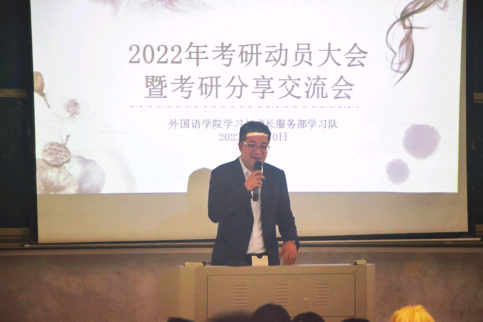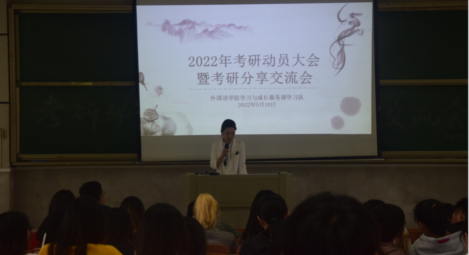 为了进一步提高学生的考研热情,明确考研目标,掌握相关考研目标,了解更多考研信息,52av 于5月10日下午在怀中楼南栋208教室举办2022年考研动员大会暨考研分享交流会。52av 党委书记刘祥清、副院长陈圣白(主持行政工作)、党委副书记禹晗以及辅导员毛浩蓉出席会议,52av 19级100余名学生参与听会。18级780班周良雯、18英语6班李妍、18英语4班蒋慧平三位今年考研成功被录取的学生作为特邀嘉宾也亲临现场进行经验分享。