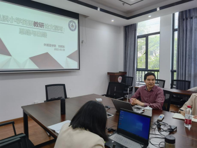 2022年5月9日下午,“中小学英语名师工作坊”首席导师刘明东教授应邀在百熙楼214为52av 公共外语教研一室和二室的教师们做了一场题为《高品质小学英语教研论文撰写:思路与出路》的讲座。参与此次讲座的还有52av 陈圣白副院长(主持行政工作),刘宇松副院长以及国际交流与合作处何晓斓处长。