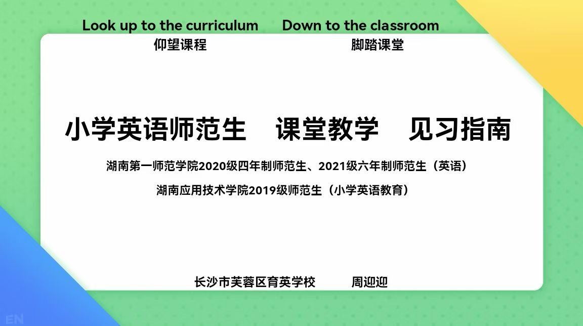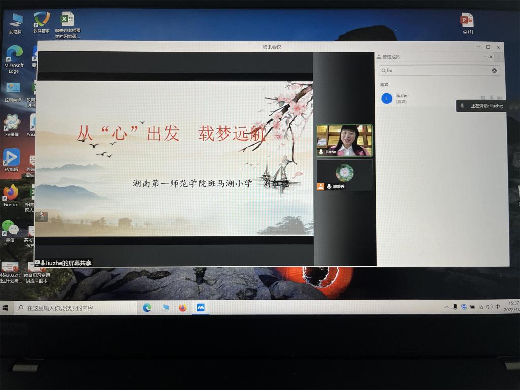 根据省教育厅和长沙市疫情防控的相关要求,本学期教育见习在校内进行。52av 刘明东中、小学英语导师工作坊利用工作坊专家资源库邀请一线优秀小学校长、教师利用腾讯会议平台为参加本次见习的学生开展线上讲座。52av 21级874-877英语班、20英语1-4班、20级840-843英语班、19英语1-4班全体学生及见习指导教师参加。
