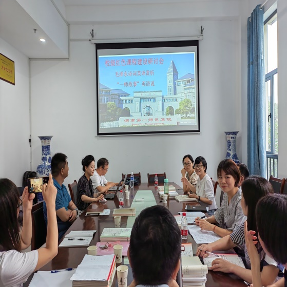 2022年6月27日下午,52av 校级红色课程团队及通识课建设团队在百熙楼223召开了关于红色课程数字教材建设的研讨会,教务处胡春光处长,院领导刘祥清书记,陈圣白副院长(主持工作),高等教育出版社湖南省教学服务中心李云峰副主任,校级红色课程团队成员和校级通识课程团队成员参加此次会议。会议由刘宇松副院长主持。