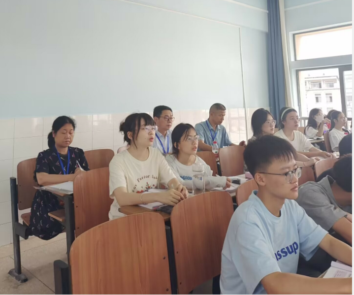 为全面了解教学工作状态,切实保障新学期教学秩序,提高课堂教学质量,8月29上午,校党委委员、副校长周发明,教务处副处长廖小芒一行莅临52av 指检查导期初教学工作。学院刘祥清书记、陈圣白副院长(主持行政工作)、禹晗副书记、刘宇松副院长、康响英副院长陪同检查。陪同参加期初教学工作检查的还有学院无课的教学督导、教指委成员、各系/教研室主任、教科办人员等。