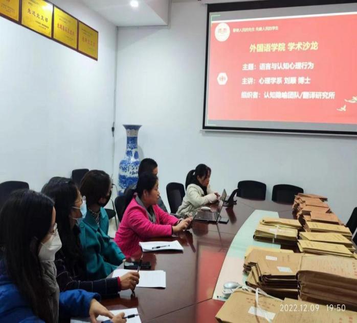 2022年12月10日,学院邀请我们2008届英语专业毕业生、华南师范大学心理学博士刘顺在百熙楼223举行“语言与认知心理行为”学术沙龙活动。本次沙龙由认知隐喻团队负责人陈清教授发起,胡靓博士主持,采取线上线下相结合的方式。康响英副院长参加了学术沙龙,代表学院热烈欢迎刘顺博士来院指导。