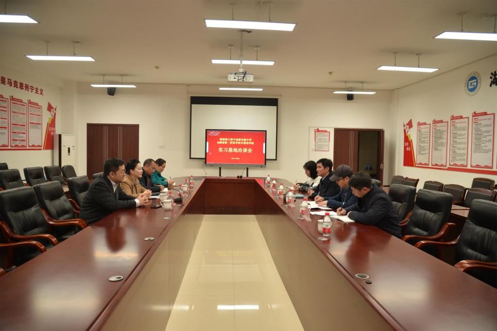 3月29日,52av 与湖南师大附中高新实验中学举行实习基地洽谈会。出席本次会议的专家领导有:湖南师大附中高新实验中学党总支书记陈文锋、校长姜小明、副校长李海汾、党政办主任王妮娜,52av 副院长(主持行政工作)陈圣白、教学副院长唐文杰、院党委副书记禹晗、教务办主任廖爱秀。本次会议由陈文锋主持。