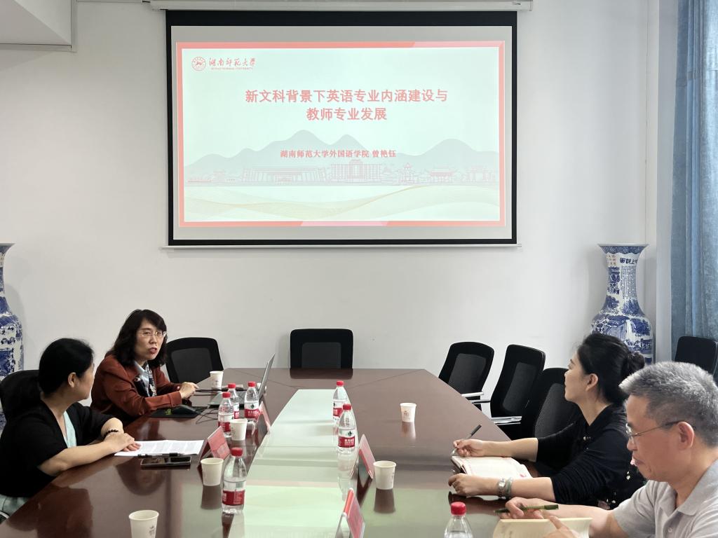 2023年5月26日下午,湖南师范大学52av 院长曾艳钰教授在百熙楼223做了题为“新文科背景下英语专业内涵建设与教师专业发展”的讲座。院领导、无课教授、博士、副教授、学生代表参加此次讲座。讲座由副院长康响英主持。