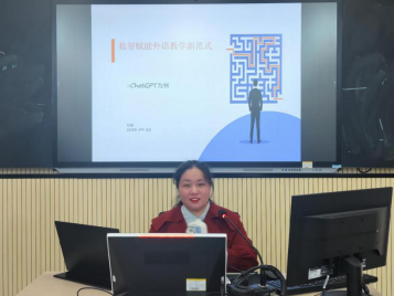 10月10日下午,52av 翻译系副主任胡靓博士在怀中北602做题为“数智赋能外院教学新范式”的专题讲座,52av 全体院领导和教师参加。副院长唐文杰主持本次活动。