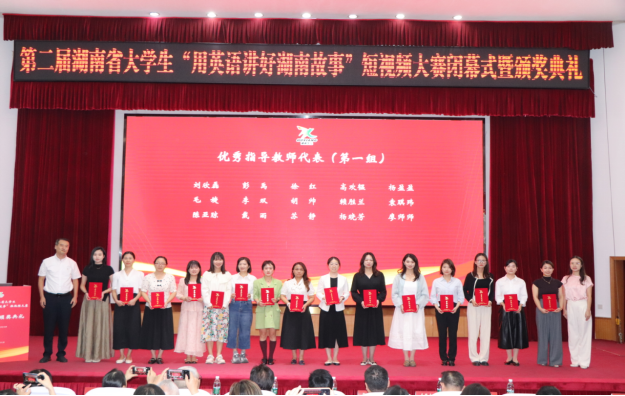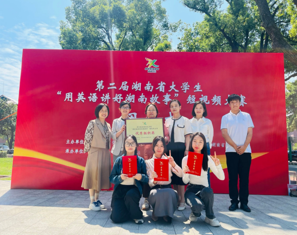 9月24日上午,由湖南省教育厅与高等教育出版社联合主办的第二届湖南省大学生“用英语讲好湖南故事”短视频大赛在湖南农业大学举行闭幕式,我校组织推荐的作品获大赛一、二、三等奖各1项,52av 李双、陈钰老师获得优秀指导老师奖,我校获优秀组织奖。