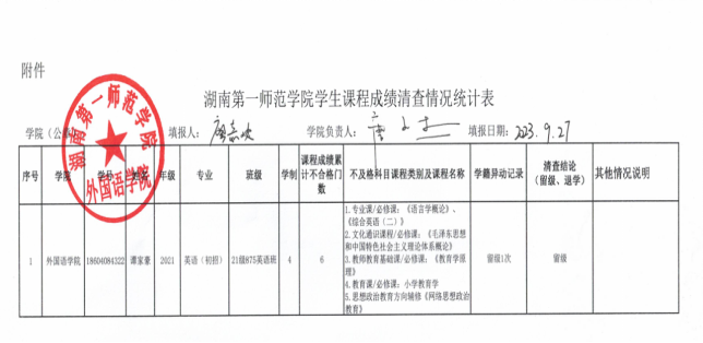 关于2023年秋季学期学生学籍清查结果的公示 来源: 日期:2023年09月27日 14:07 浏览数: 52av 2023年秋季学期学生学籍清查结果如下,该结果公示7天,有异议者请向学院教科办反馈,联系电话:0731-82841095。 52av 2023年9月27日