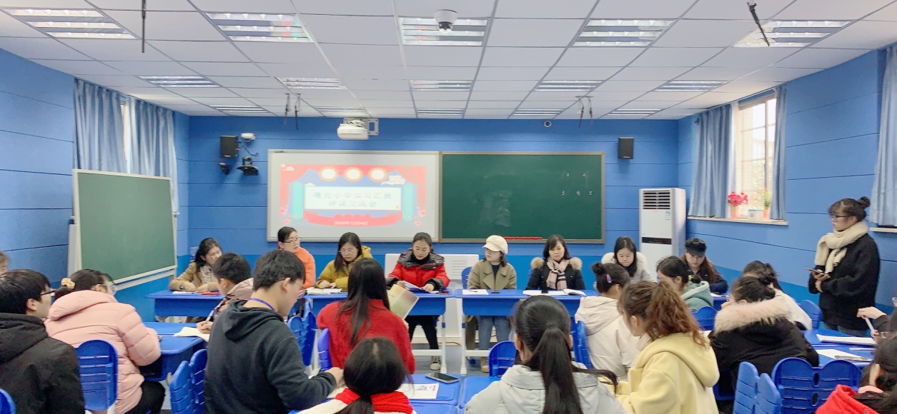 示范课展示结束后,全体老师与实习生召开实习汇报交流会。汇报交流会由天心区曙光小学校长徐蓉主持。