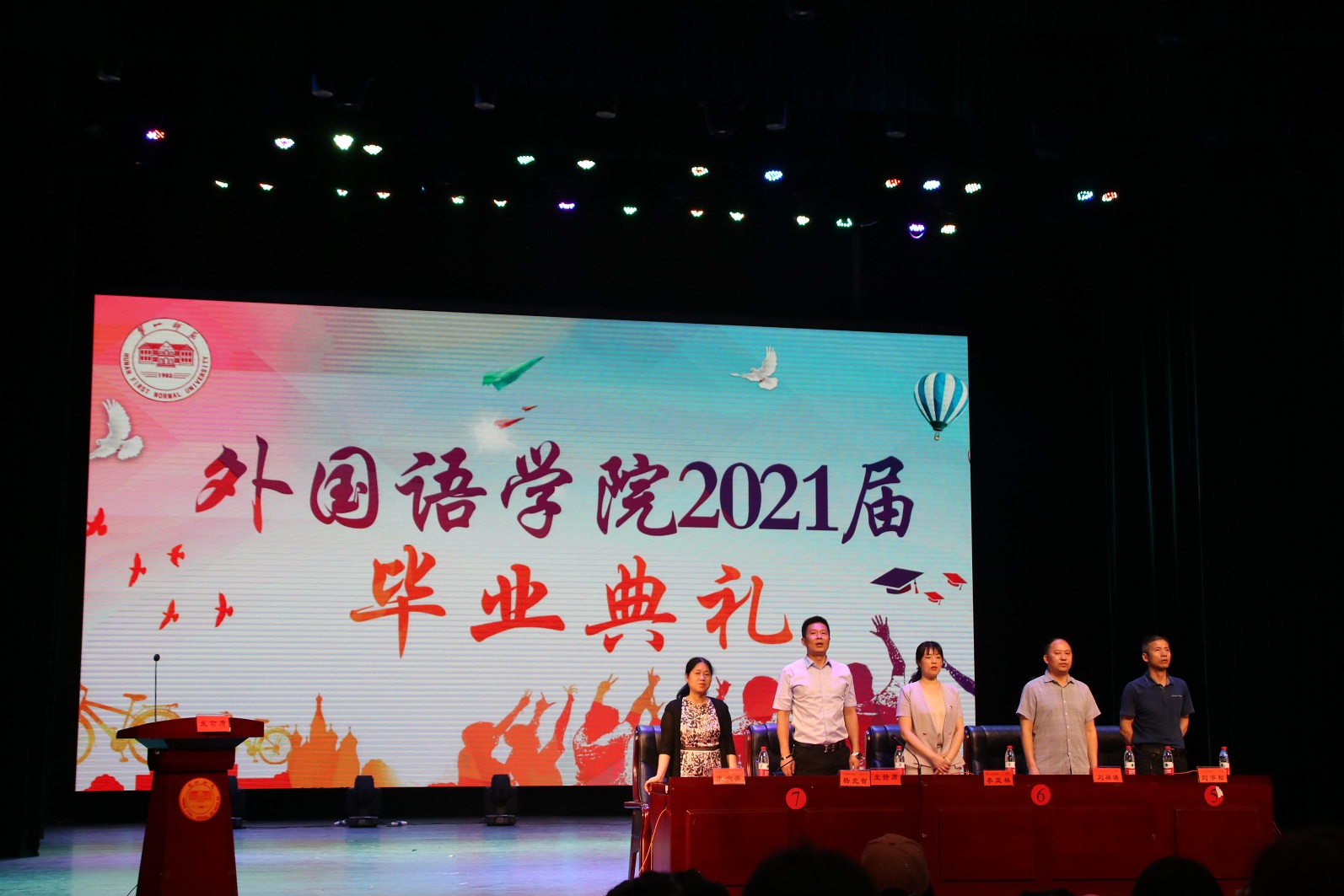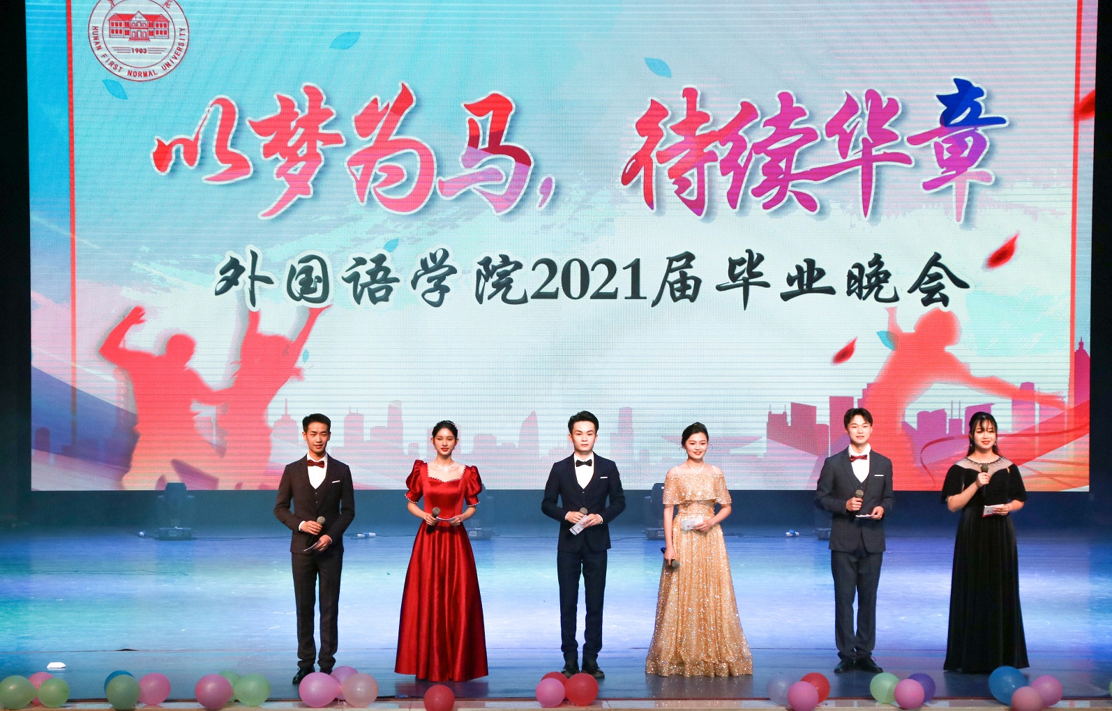 6月7日晚,52av 2021届毕业典礼暨“以梦为马,待续华章”毕业晚会在田汉剧场举行。校友会秘书长邓朝晖、办公室主任廖跃华出席活动,并与52av 全体党政领导及1000余名师生代表一起观看了晚会。