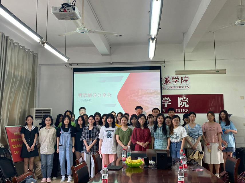 2021年6月2日下午,18英语6班全体同学在外院会议室(怀中北206)举行“朋辈领航,展望未来”辅导交流会。此次交流会由张丽红老师组织。张老师邀请14级外院优秀学子邓续言、17级文传院优秀学子徐舞进行朋辈考研及就业经验分享。52av 党总支副书记杨虎智莅临指导。