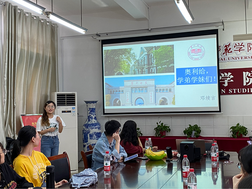 17级739中文班徐舞今年考取湖南师大英语口译专业研究生。它首先勉励大家大学学习期间要踊跃参加学科竞赛。她本人获2019年“外研社·国才杯”全国大学生英语演讲大赛决赛二等奖,英语写作大赛初赛一等奖,英语阅读大赛初赛二等奖,2019年第二十五届湖南省大学生英语演讲比赛一等奖等。她认为,英语学习是一段艰辛又很有趣味的过程,并总结了一些她自己认为新颖而有效的、将听说读写译五个基本技能作为一个相互联系的有机整体的学习方式。具体来说就是,练习听力时,口语结合复述练习进行“影子跟读”;练习阅读时,不局限于国内的英文材料,更要放眼于国外各类期刊,吸收更为地道的表达。她还分享了备考研究生的经验,即攻克知识难关,脚踏实地,充分做好时间管理、学会利用碎片时间,注重效率,多关注师长们提供的学习资源,适时调整学习与生活节奏,充分放宽心态等。