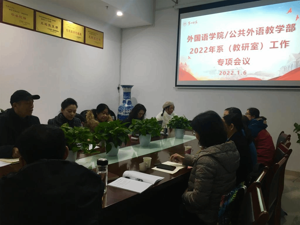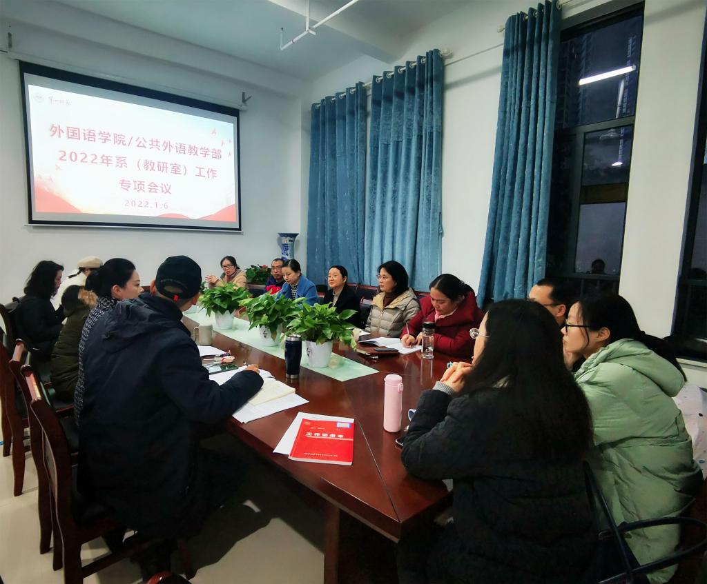 2022年1月6日下午,52av /公共外语教学部系(教研室)工作专项会议在双创楼223召开。学院副院长刘宇松、康响英、系(教研室)主任张昀霓、陈钰、陈倩、曾碧锋、副主任王曼、毛晔、何再三、原教研室主任蔡军、梁薇、党政办主任刘永红、教科办龙佳妮、廖爱秀参加会议。会议由陈圣白副院长主持。