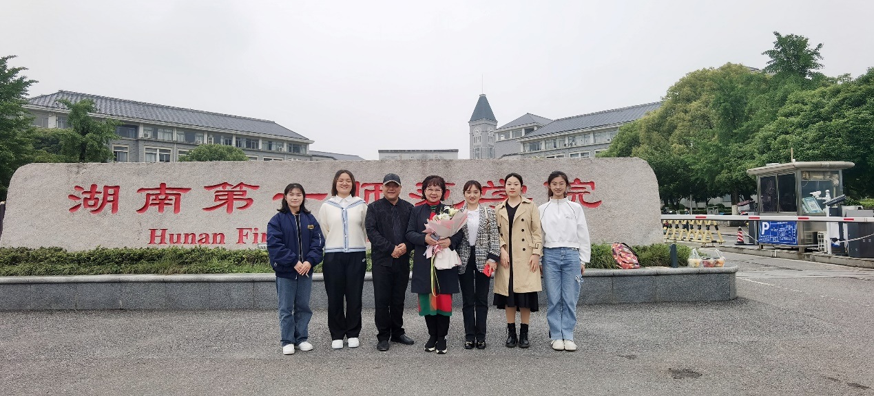 2022年5月1日下午,在校工会的大力支持与协助下,国家一级演员,“梅花奖”“文华奖”得主,湖南省花鼓剧院著名花鼓戏表演艺术家刘赵黔老师应52av 52av 邀请,在湖南省曲艺家协会会员,长沙市曲艺家协会理事,长沙市曲艺家协会第一师范分会会长张志华老师陪同下,来52av 指导学科竞赛活动,与52av 荣获首届“高教社杯”高等学校(本科)“用外语讲中国故事”优秀短视频作品征集活动省级一等奖的团队学生近距离沟通并亲切交流。