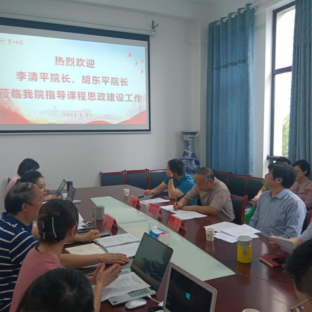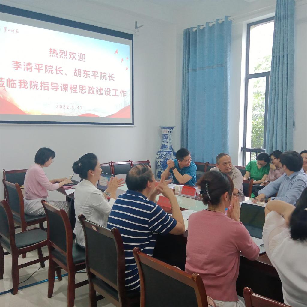 2022年 5月31下午,为了促进课程思政教学改革,提升教师省级课程思政竞赛能力,52av 邀请了校外专家中南大学52av 院长李清平教授,湖南农业大学52av 院长胡东平教授,高等教育出版社湖南省教学服务中学副主任李云峰来52av 指导课程思政建设工作,研讨会在百熙楼223举行。教务处副处长廖小芒教授、教学运行科科长欧阳君、52av 党委书记刘祥清、副院长(主持工作)陈圣白、党委副书记禹晗、副院长刘宇松、副院长康响英、雷琬瑢复赛团队、王彩虹复赛团队、52av /公共外语教学部的部分老师及其他院部感兴趣的老师等参加此次研讨会。会议由副院长陈圣白主持。