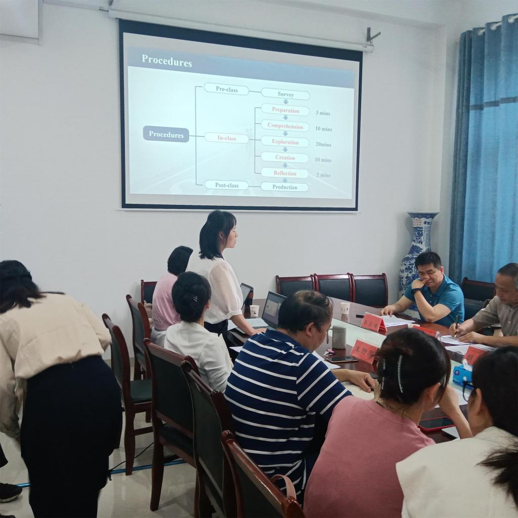 接着,雷琬瑢复赛团队、王彩虹复赛团队分别进行了教学设计和片段教学展示。两位参赛老师博采众长,教学设计思路清晰,亮点多多,准备充分,既展现了深厚的教学功底,也把思政自然地融入了课堂教学,得到李清平教授和胡东平教授以及李云峰副主任的一致肯定与好评。专家们对参赛教师的教学设计提出了很多有针对性的修正意见,对教学步骤,教学环节,教学流程、教学模式,教学方法、PPT设计等逐一提问、点评,提出了宝贵的修改建议和指导意见。研讨会不仅仅使参赛老师受益,与会的其他老师领导也收获颇丰。