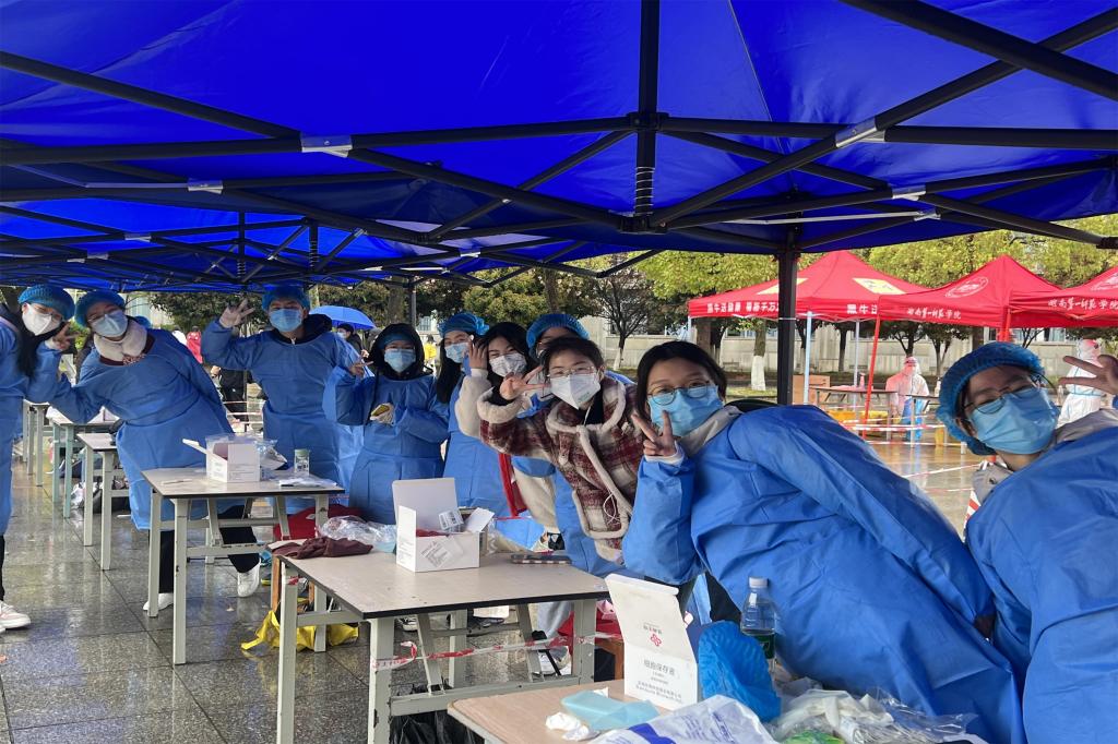 难捱的时间飞速流逝,在雨势不减的环境中,此次全体核酸检测活动逐渐接近尾声。在医护人员、志愿者以及全校师生三方的共同努力下,全体核酸采集任务圆满完成。