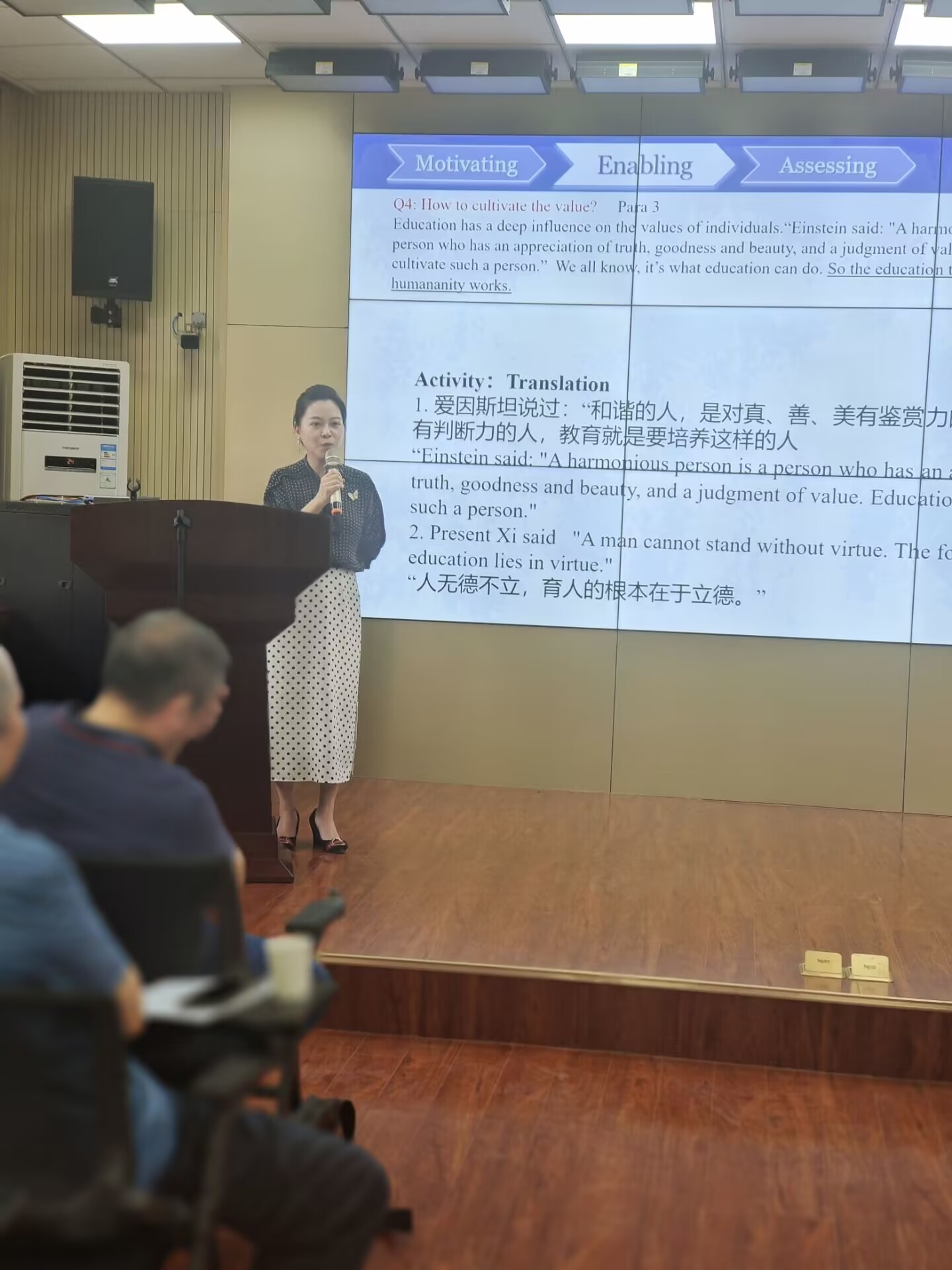 模拟赛上,52av 两位参赛主讲教师雷琬瑢和王彩虹老师分别进行了10分钟说课和5分钟教学内容展示,并回答了专家的提问。专家们针对两位老师在此次模拟赛中表现,从不同方面和角度给予了详实、中肯、富有建设性的意见与建议。