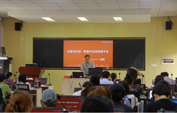 2023年6月10日下午在怀中北602,湖南师范大学52av 陈小法教授为52av 师生举行“天涯与比邻:我看中日关系两千年”的学术讲座。讲座由二外课程组组长吴娱主持,康响英副院长出席致欢迎辞。二外日语课程组全体教师、翻译研究所所长胡靓博士、文学与传播学院王正博士、21级翻译班和21级英语5班全体学生、2022级高招日语学生近100人参加了本次讲座。
