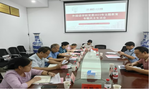 周发明副校长在总结点评时对本次民主生活会给予了充分肯定和高度评价。周校长认为,本次专题民主生活会是高水平的民主生活会,呈现四个特点:第一,前期的理论学习比较到位,会议准备比较充分,个人学习和集体学习贯穿了主题教育理论学习的全过程;第二,民主生活会的方案和各项材料齐全、细致、规范;第三,自我批评较深刻,原因剖析较深入;第四,相互批评很有针对性。同时,周校长也指出,对照高标准的要求,各位委员在发言提纲材料撰写、自我批评中的思想认识问题查摆以及相互批评的力度上还有提升的空间,希望切实对照习近平总书记的重要讲话精神和学校党委的要求修改、完善发言提纲和各项会议材料。最后,周校长对学院工作提出了四点具体要求。一是要精心谋划,推进学院高质量发展上新一个台阶;二是公共外语教学改革要取得新突破;三是学院专业学科建设要推出新举措,中学英语教师培养和翻译专业特色内涵发展还要多调查研究;四是要探索党建与业务有机融合的新举措,总结新经验。