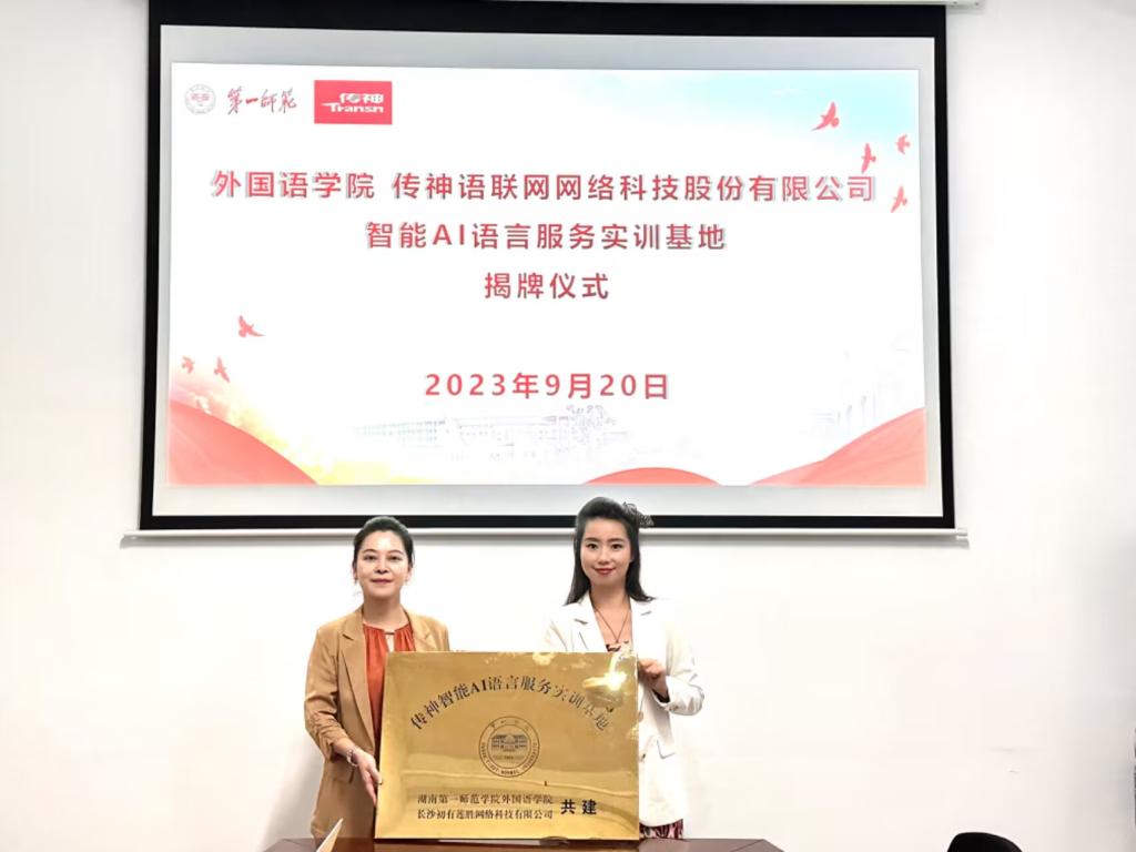随着AI技术与外语专业教育的深度融合,52av 与传神语联网网络科技股份有限公司/长沙初有莲胜网络科技有限公司携手合作,共建智能AI语言服务实训基地。9月20日,双方在百熙楼223会议室举行了隆重的揭牌仪式,标志着合作共建正式启动。