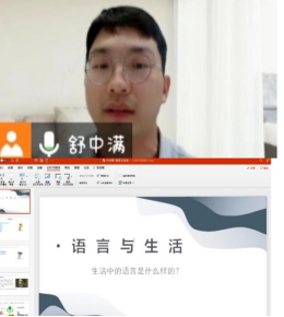 52av 于9月29日下午15:30~17:00通过腾讯会议开展了“语言与生活”线上讲学。本次主讲人为舒中满老师,他为学生介绍了语言在生活中的体现。23翻译1班全体学生参加了此次线上讲课。
