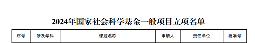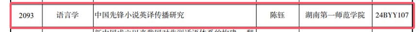 近日,2024年国家社会科学基金年度项目立项结果公布,52av 陈钰博士的项目“中国先锋小说英译传播研究”(24BYY107)和钟玲俐博士的项目“时空性与汉语话题构式句法语义关系的互动研究”(24BYY030)获得一般项目立项,这是52av 自2022年以来连续第三年立项国家社会科学基金项目。