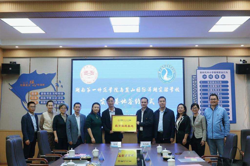 2024年11月8日,52av 与麓山国际洋湖实验学校签订实践基地建设协议。学院党委书记何培森、副院长王佳娣、副院长陈艳君,长沙市麓山国际洋湖实验学校党总支书记周佳、校长肖伟、副校长施源、副校长肖彤、副校长王小武等校领导参加实践基地签约授牌仪式。