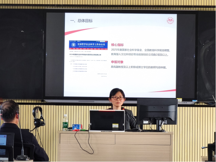 动员会上,王佳娣首先介绍了本次会议召开的背景,向与会教师解读了学院2025年度高级别科研项目申报工作方案,重点介绍了国家社科基金项目、全国教育科学规划项目和教育部人文社会科学研究项目的申报准备工作、时间安排,宣讲了学校“应报必报”的工作要求和学院的相关支持政策。