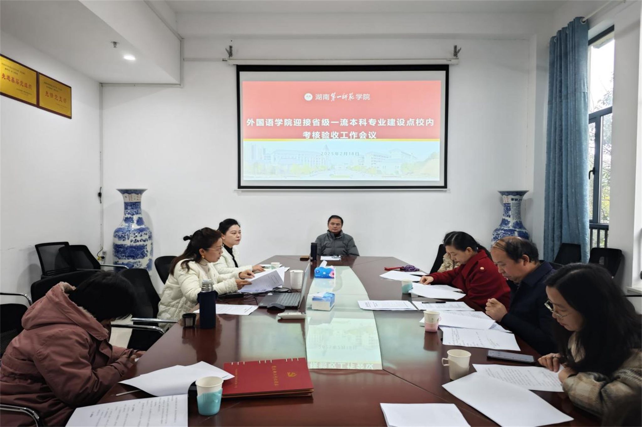 2025年2月18日下午,学院在百熙楼223会议室召开省级一流本科专业建设点校内考核验收工作会议。院党委书记何培森、副院长陈艳君、英语专业负责人刘祥清、翻译专业负责人陈圣白、英语系系主任张昀霓、翻译系主任蔡军及相关老师参加了会议。会议由何培森主持。