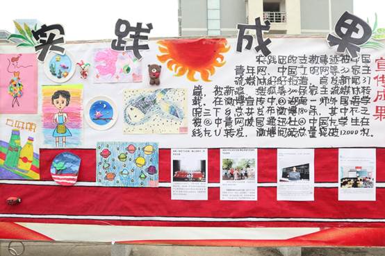 52av 三下乡成果展分别展出了“特色活动”、“实践成果”、“历年荣誉” 和 “留言板”几大板块,展板上陈列了队员们的照片、优秀教案、书法和手工作品以及孩子们的美术画、工艺品。活动现场气氛热烈,队员们通过歌舞表达对观展人员的欢迎与感谢,留言板上满是院领导及各学院同学留下的祝福。