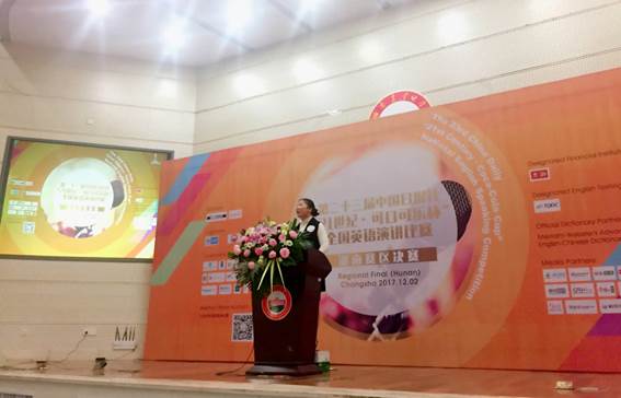 2017年12月3日,第二十三届“21世纪.可口可乐杯”全国英语演讲比赛湖南赛区决赛在湖南农业大学举行,由52av 罗亦陶老师指导的2015级688英语班龙溆霖同学在本次大赛中荣获三等奖。