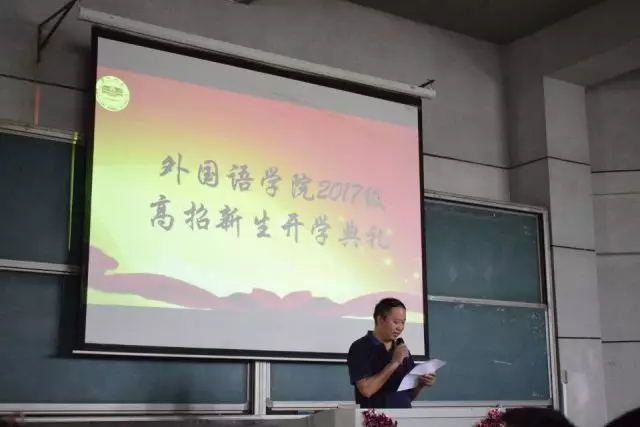 典礼开始,全体起立,奏唱国歌。院长刘祥清上台致辞,他代表52av 向全体新生表示热烈欢迎,并为新生介绍了52av 悠久的办学历史、雄厚的师资力量、完善教学设施以及特有的专业特色。