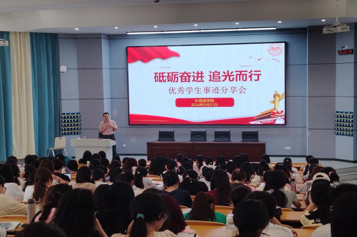 为倾听外院学子心声,帮助52av 学生解疑答惑、确立学习方向、提高学习效率、明确考研和学业规划等。52av 2024年5月21日下午在怀中南110举办了“砥砺奋进,追光而行——优秀学生事迹分享会”。本次分享会,学院党委副书记戴建宇参加并致辞,由获得国家奖学金、校级一等奖学金、2024年外院考研成绩优异的21级874英语班刘思雨同学、20级842英语班李圣华同学和20英语4班左雅钰同学进行经验分享。