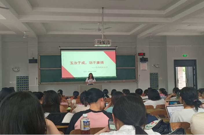 5月28日下午,52av 考公&申请升学专题讲座在怀中南208教室举行。本次讲座由学院党委副书记戴建宇主持,罗梅斯和余思雨担任主讲进行经验分享。